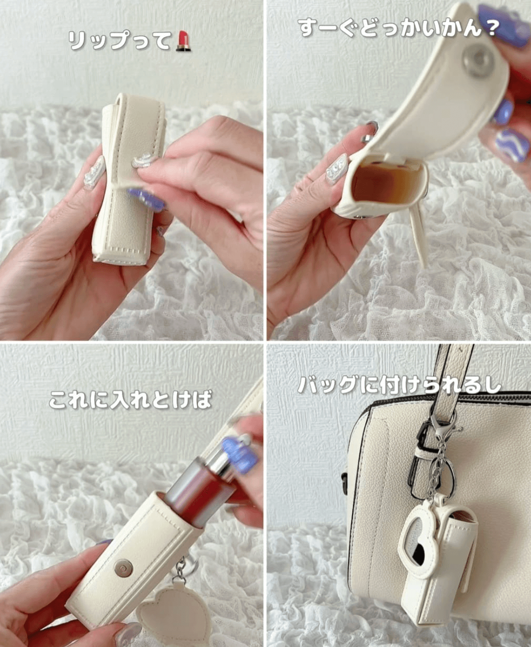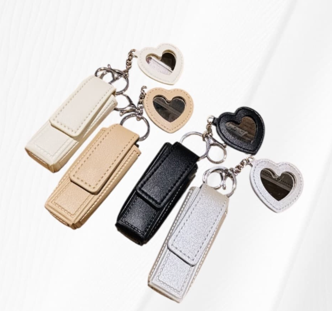 ⟣ 愛心形狀鏡子 ➕ 唇膏小物收納套 ➕ 包包吊飾多功能