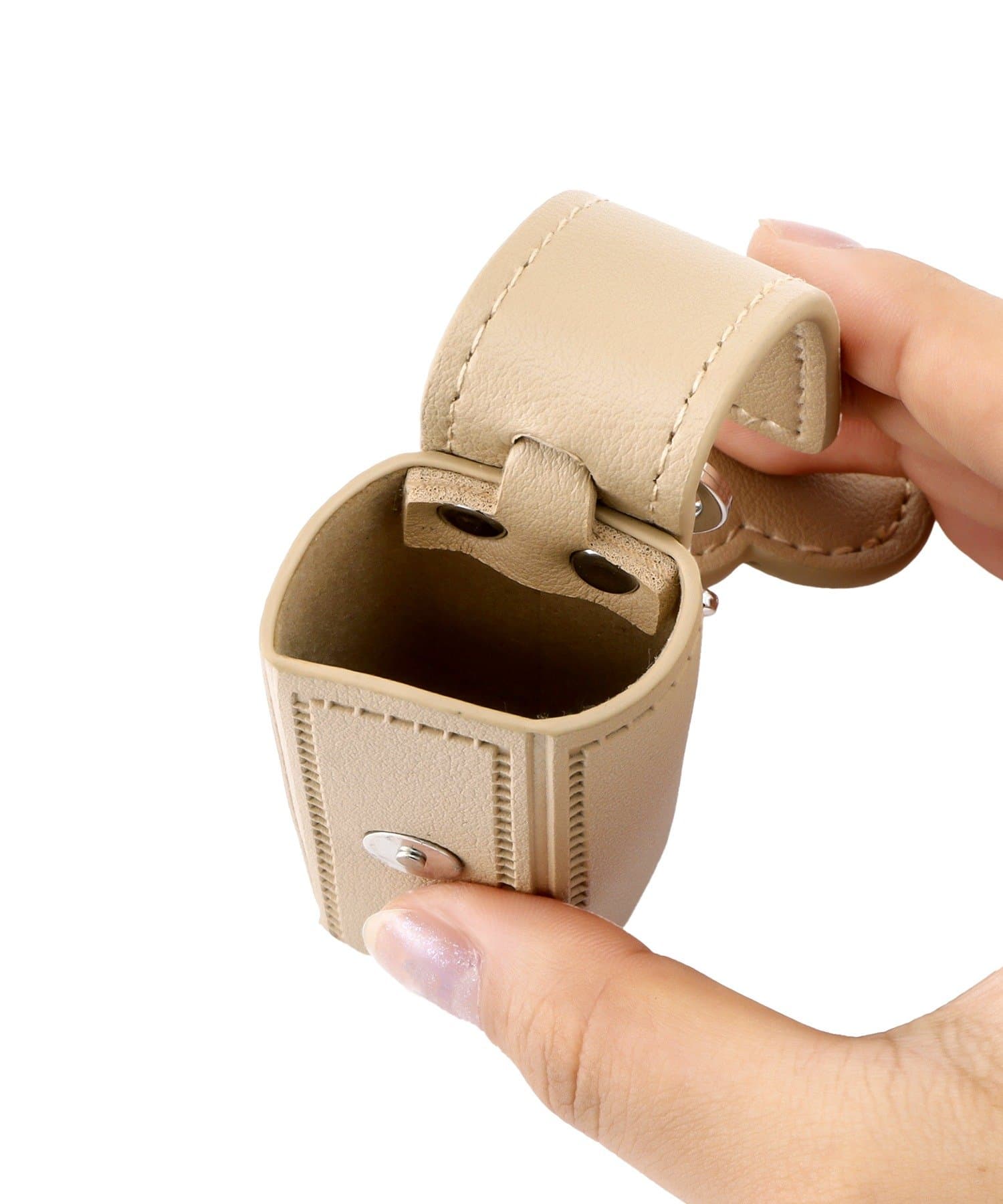 迷你愛心鏡補妝瞬間搞定,附扣口袋可收納口紅、小瓶酒精或隨身香水,隨手一取超方便!