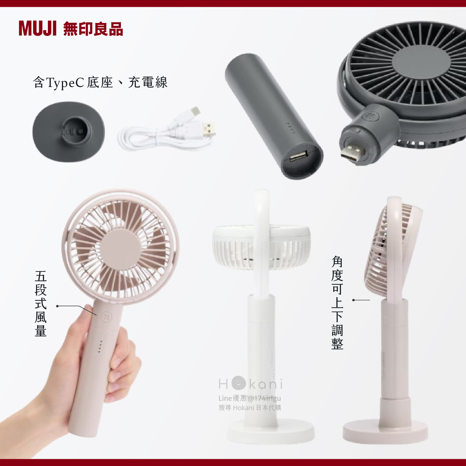 五段式調節是目前無印系列風量最大的隨身電扇~