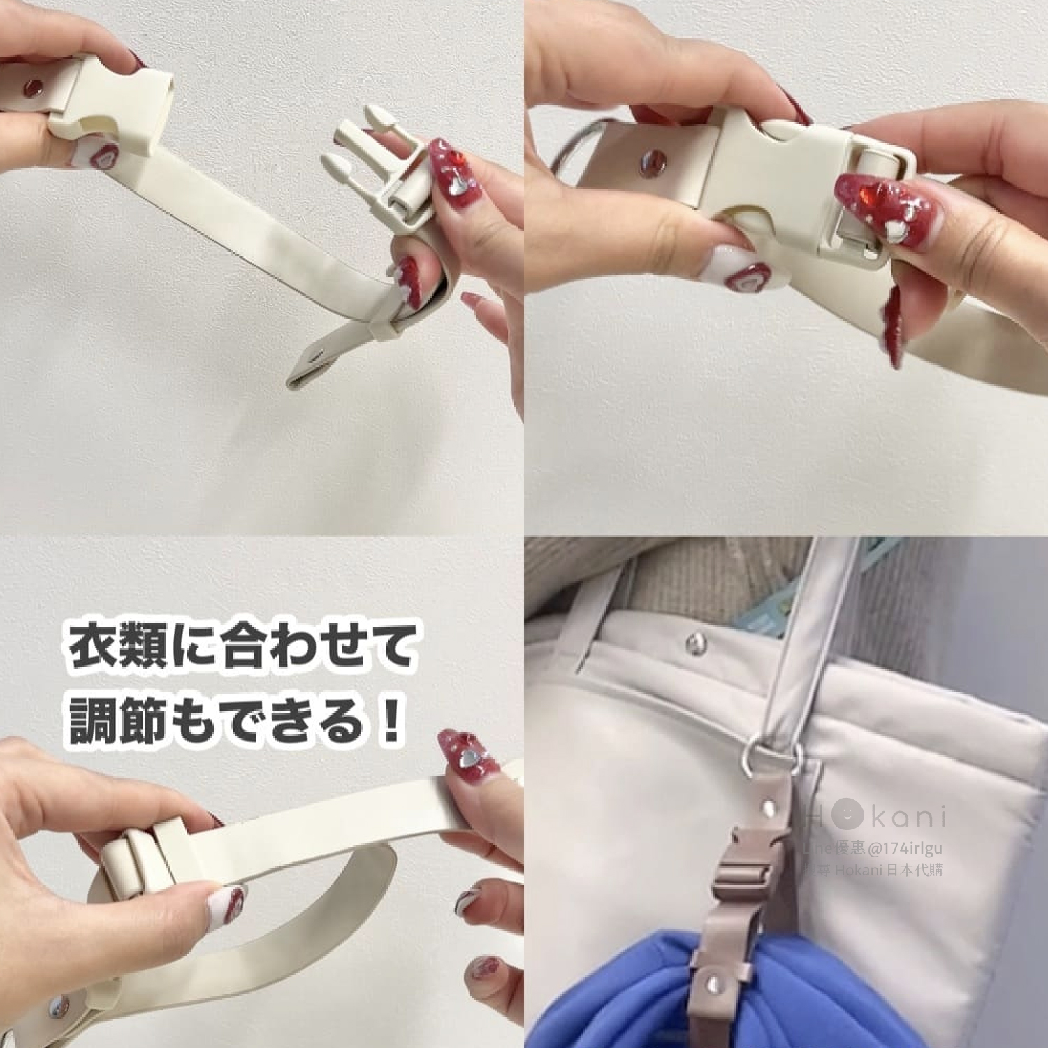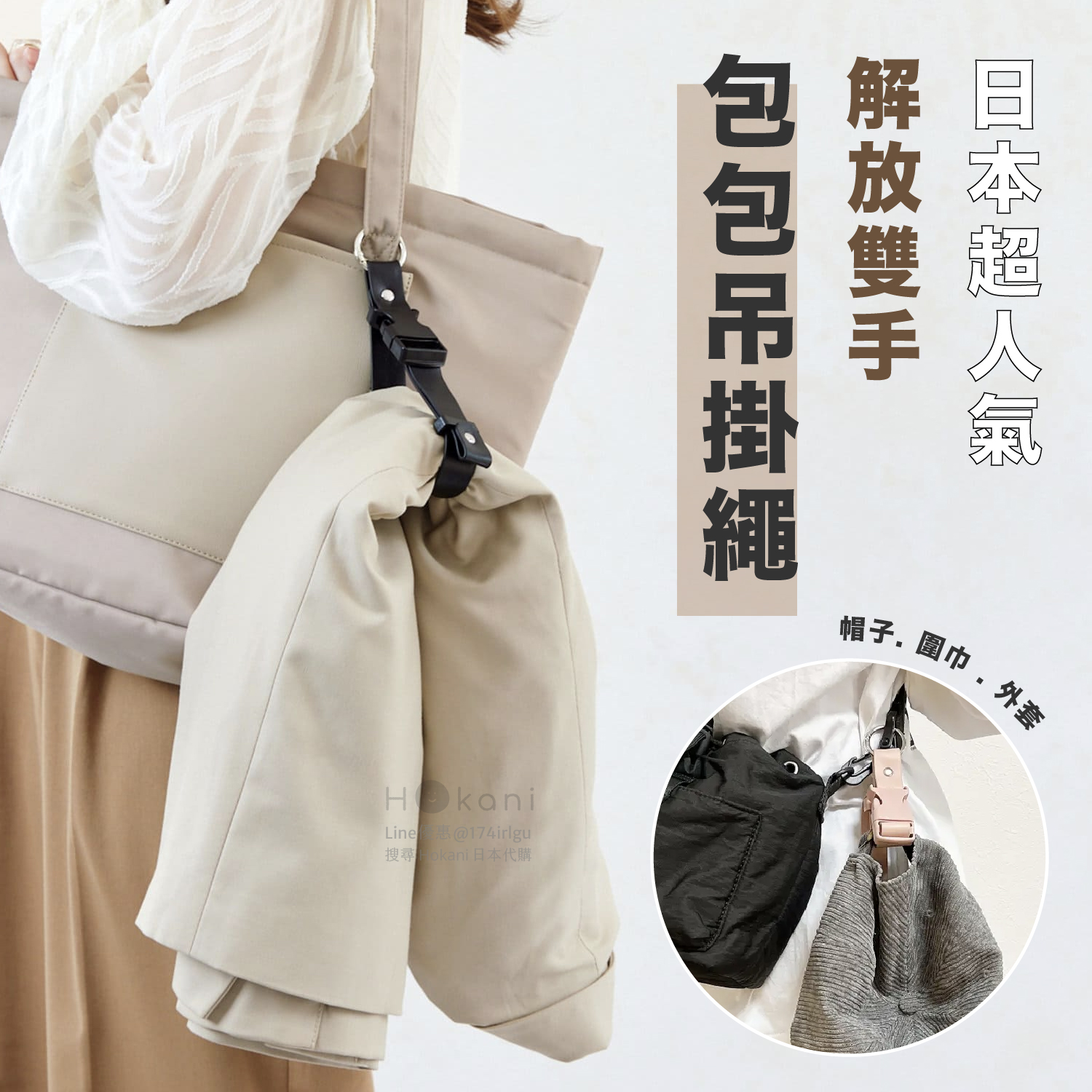 日本超人氣話題商品,解放雙手!可輕鬆固定在包包上的多功能掛扣~可以輕鬆捆住外套、圍巾、帽子等物品,也可以按照物品尺寸調整長度。