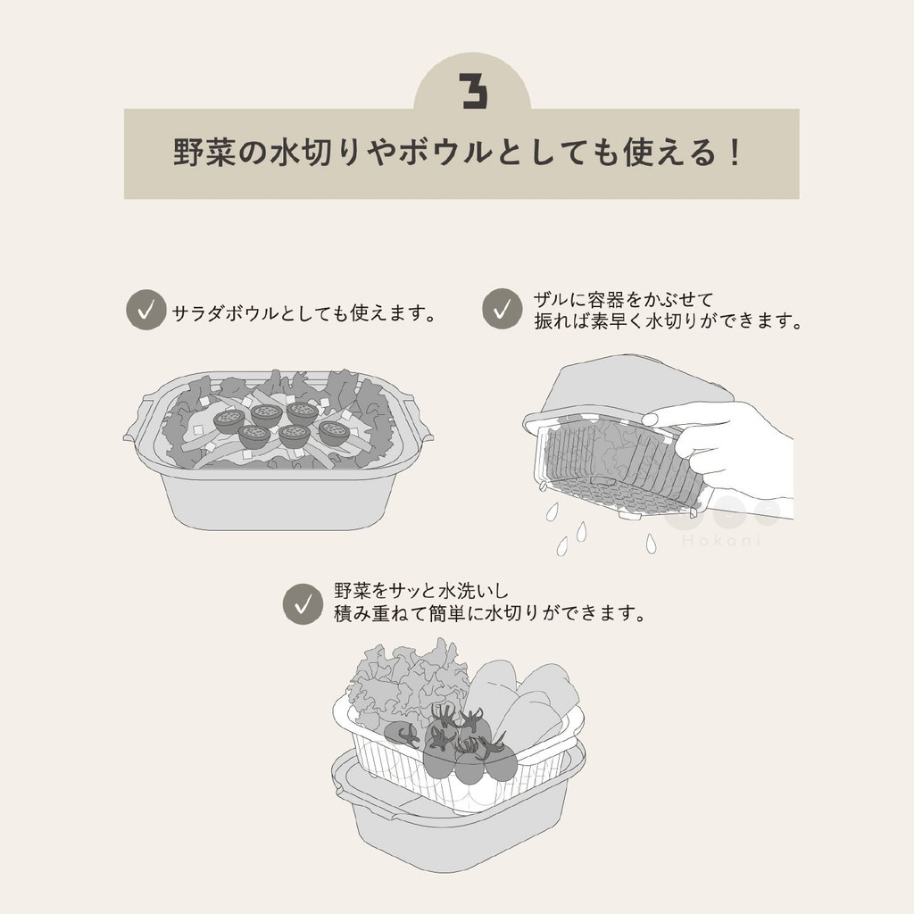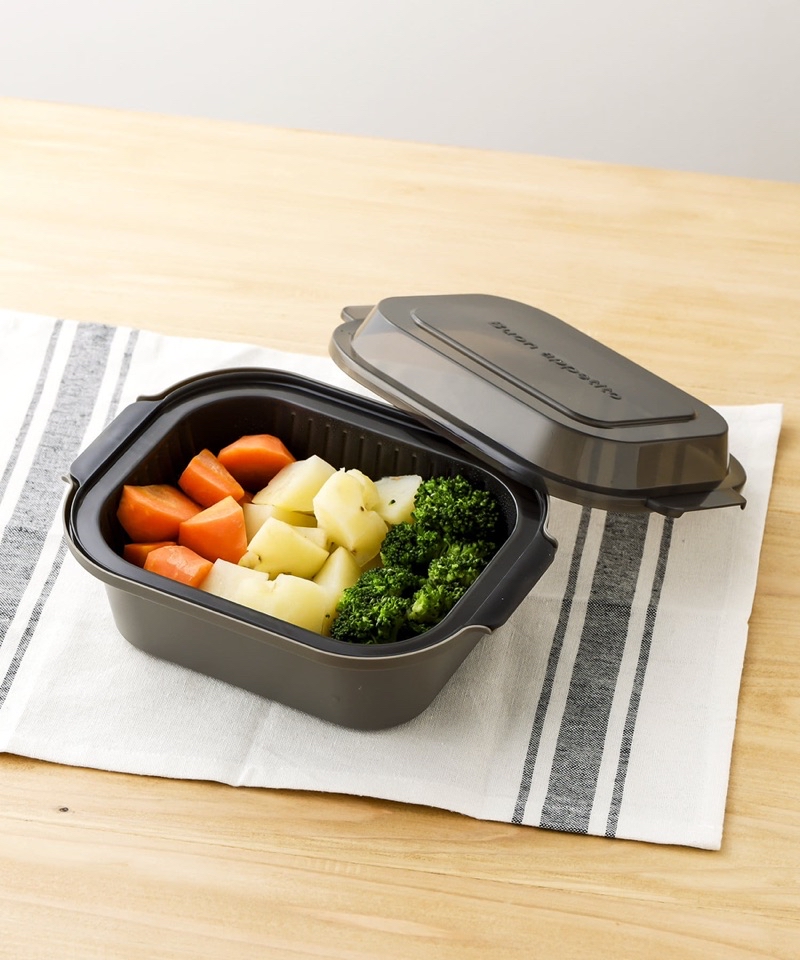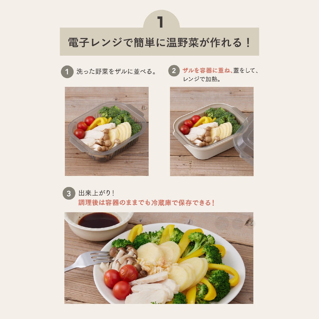 想要做溫沙拉🥗只要放入蔬菜,打開上方通氣口就可以直接送進微波爐加熱,隨時輕鬆製作健康餐盒🥬🍅